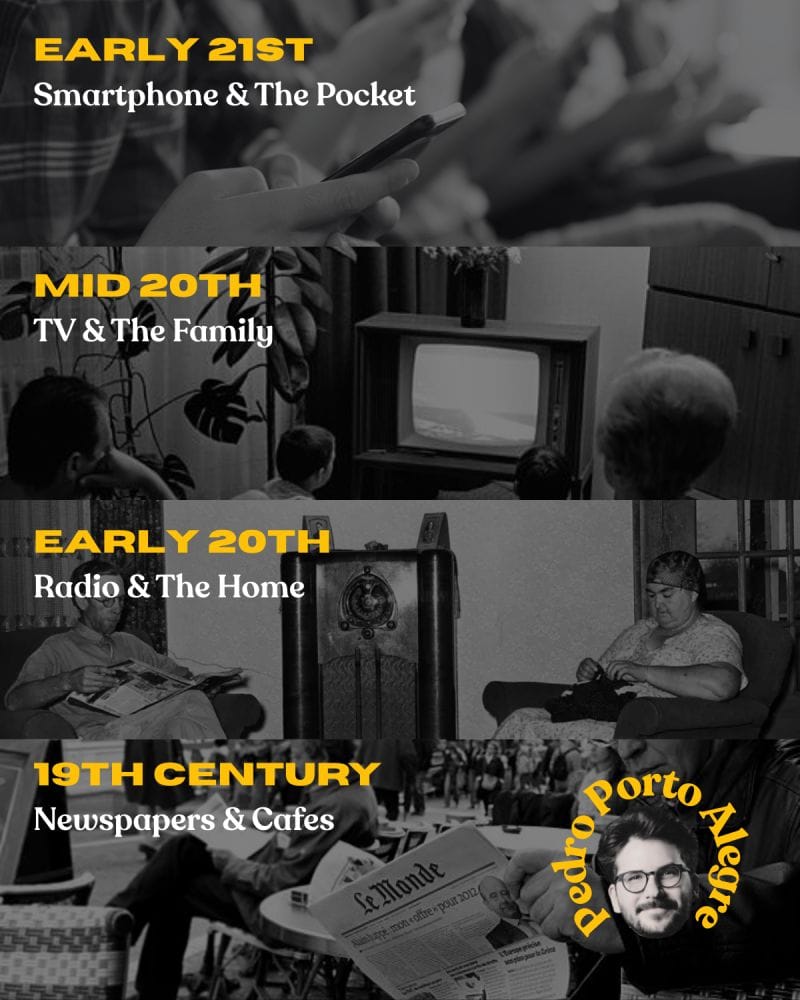 After WWII the television added a transformative layer to this whole landscape, and basically dominated for the remainder of the 20th century, until the internet started to take hold.