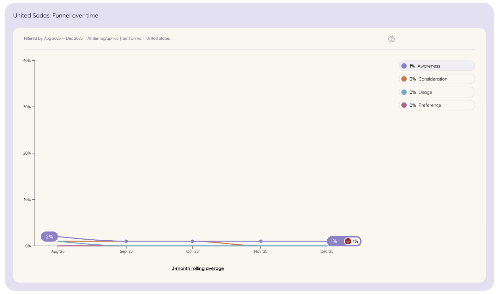 And when a brand is absent from memory, everything that follows becomes almost impossible to interpret. Low consideration is not necessarily a signal of low appeal. Low preference is not a verdict on quality. Flat usage is not proof the product isn’t working. Often, it’s simply what happens when the market hasn’t been exposed to you at scale. To put it simply: United Sodas’ challenge is visibility, not rejection.